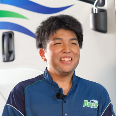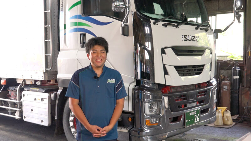 以前は観光業で働いてたんですけど、「何か資格を取りたい」と思っていた時に、祖父が昔トラックドライバーだったのを思い出して。それで興味が湧いて調べてみたら、北交産業には免許取得制度があると知って、「ここなら挑戦できる!」と思って入りました。働きながら会社のサポートで大型免許が取れるので、安心でした。